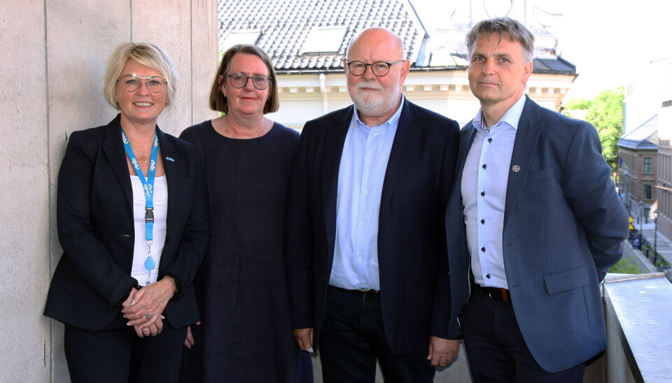 Fra venstre: Marit Solheim i Delta, Anne Green Nilsen i Fagforbundet, Terje Skyvulstad i Utdanningsforbundet og Jørn-Tommy Schjelderup i PBL.