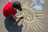 Sola skinte på en vårdag, og barna spurte