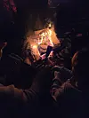 jakta til hentekaffe rundt bålet, og da tar de gjerne middagen der, og blir til