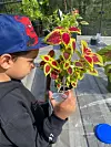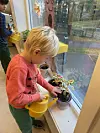 Barna i Lia barnehage planter, potter om, klipper stiklinger, ser på røtter, høster frø fra blomster og steller plantene. Foto: Lia barnehage